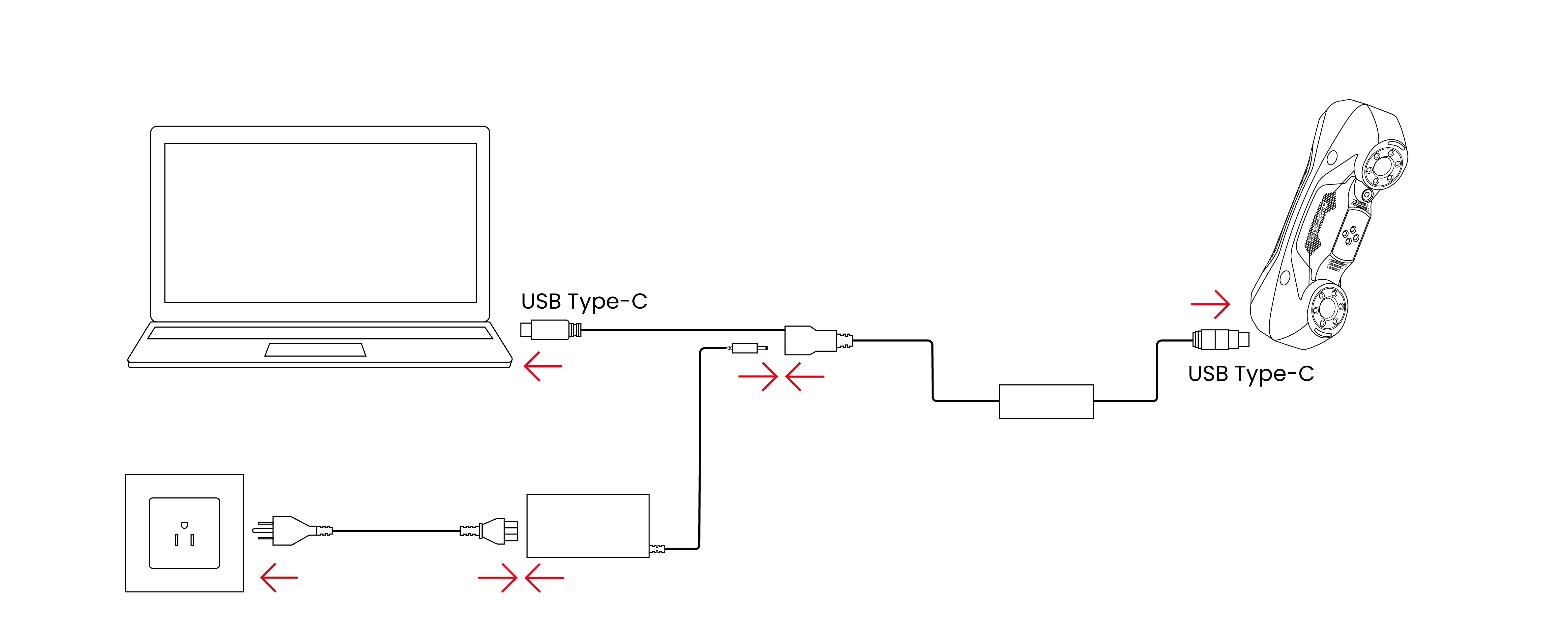 As shown in the above diagram, power the scanner and connect it to the PC's USB 3.0 port.