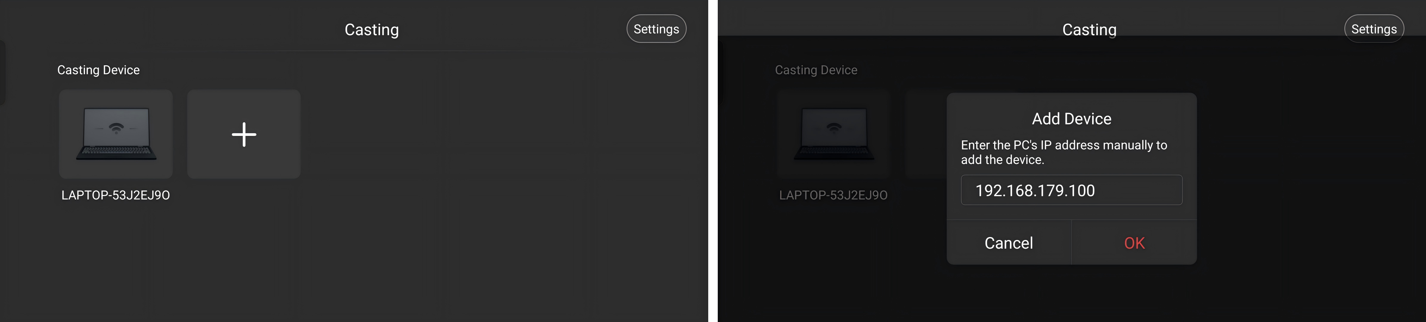 Step 3: Open the Revo Mirror app on your phone, and the software will automatically detect the device to be mirrored. Alternatively, click "+" to manually enter the computer's IP address and add the device to be mirrored.