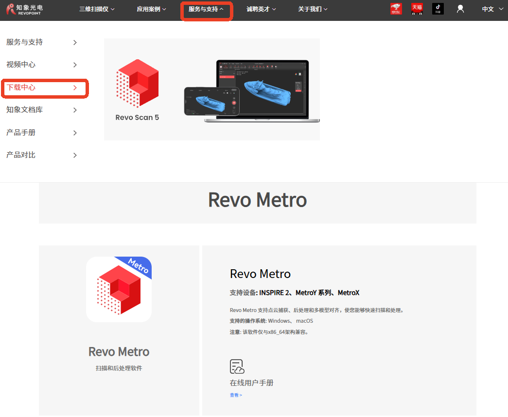 首次扫描前,请前往网站服务与支持 - 下载中心 页面为您的扫描仪下载“Revo Metro”扫描软件。