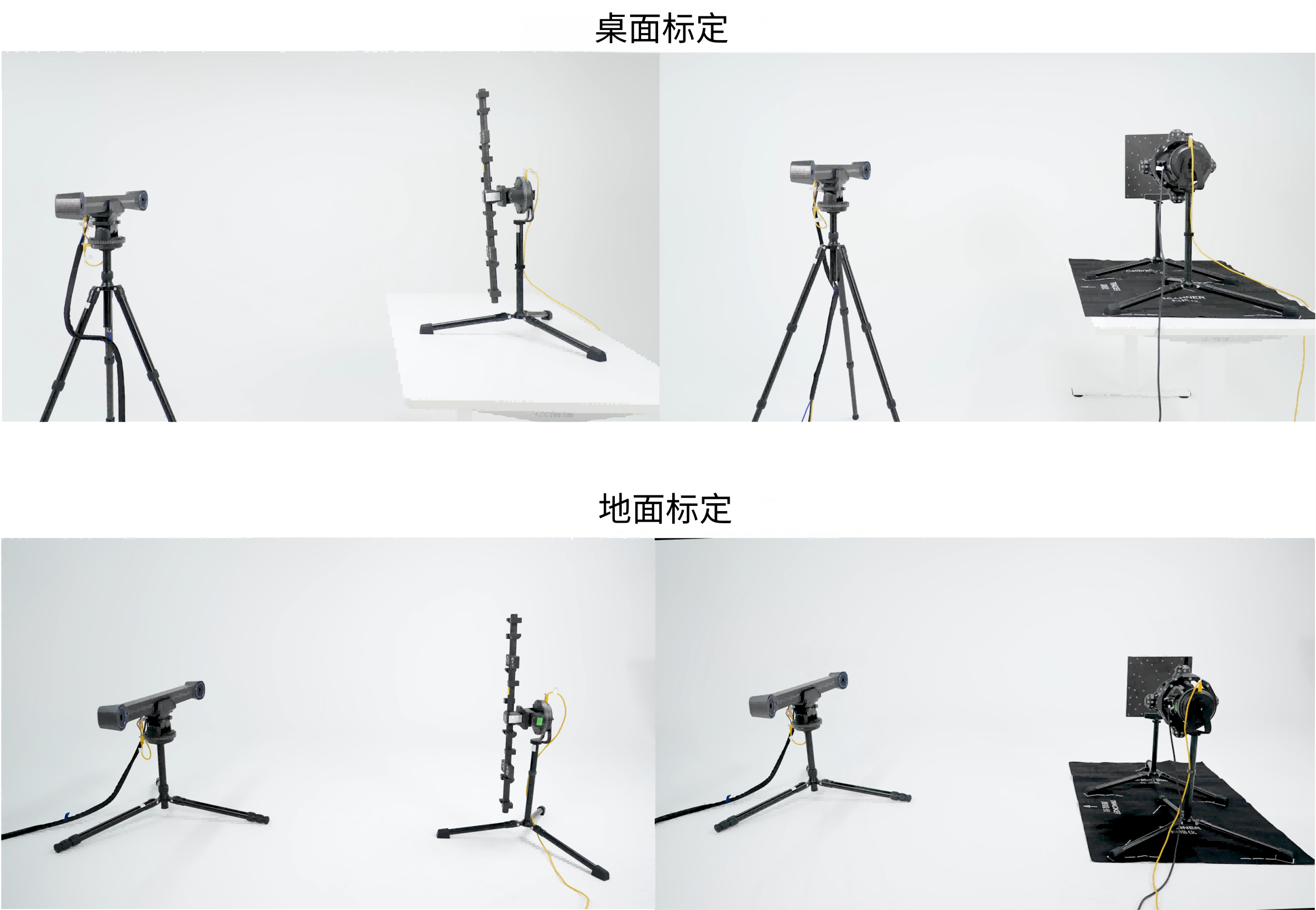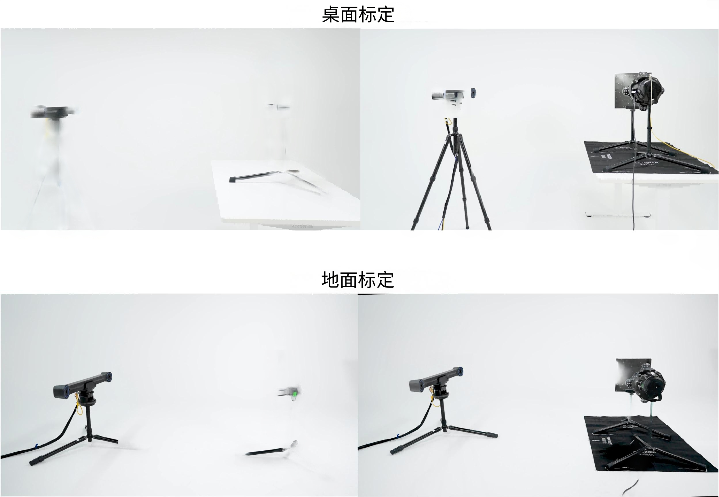 • 确保Tracker三脚架,Scanner三脚架和标定板三脚架安装在一个稳定坚固的刚性平面。
