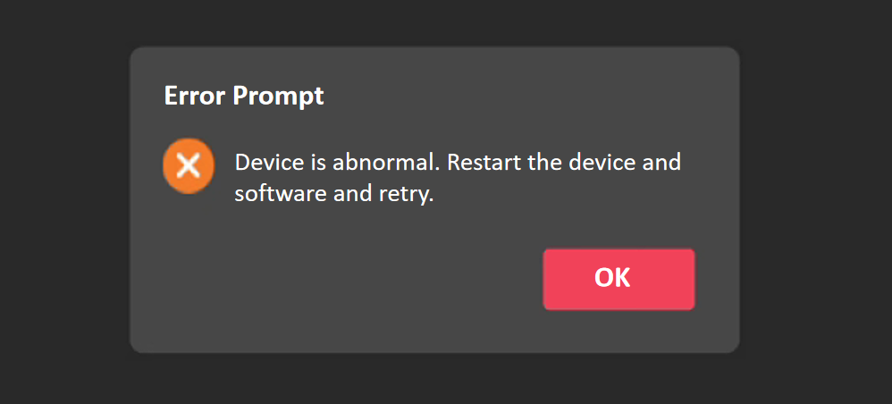 1) 点击“确定”,拔掉数据线,重新连接设备,然后再次启动Revo Track软件再试一次。如果无法解决,请尝试解决方案2。